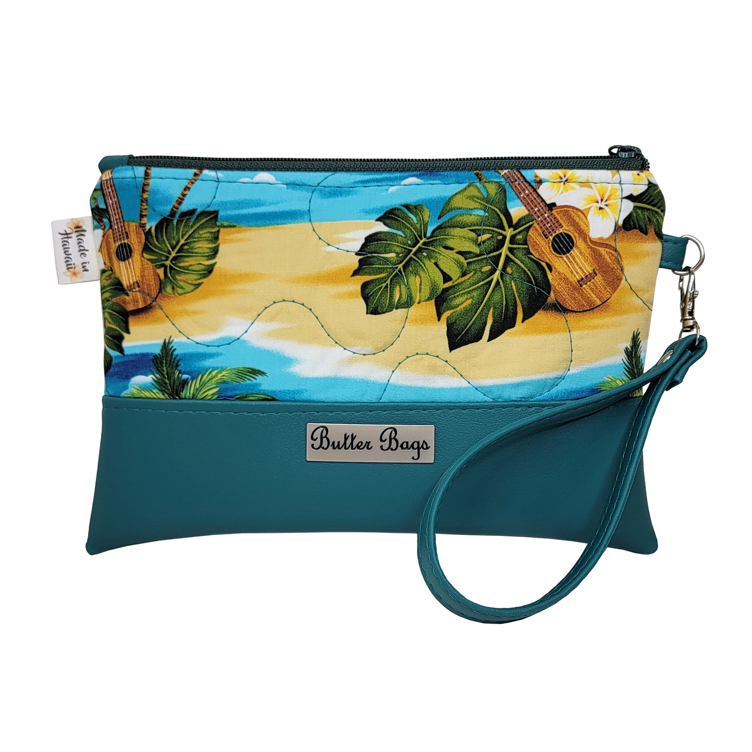 Introducing our exclusive Soft Quilted Wristlet, where tropical allure meets timeless elegance. Crafted from cotton fabric sourced in Hawaii and accented with faux leather, this wristlet encapsulates the essence of paradise in every stitch.