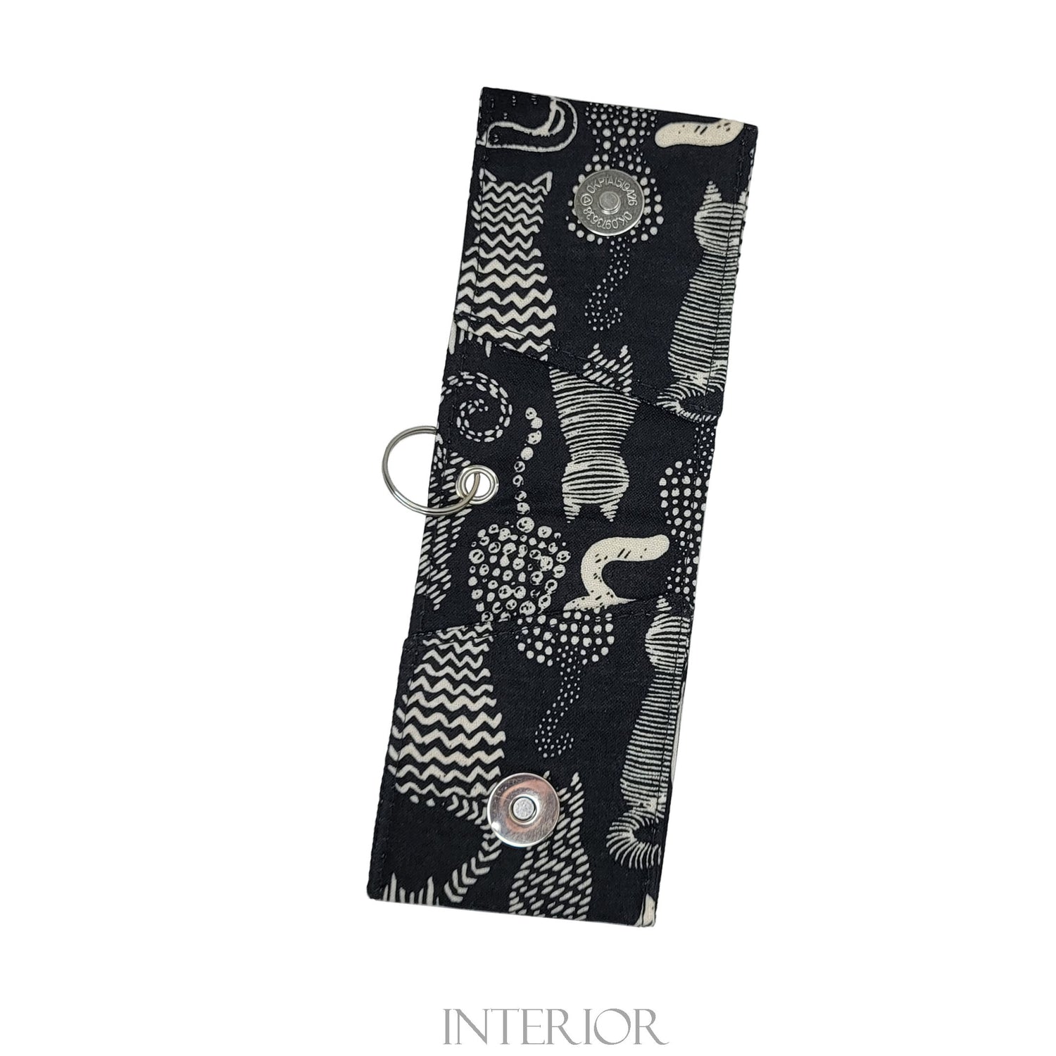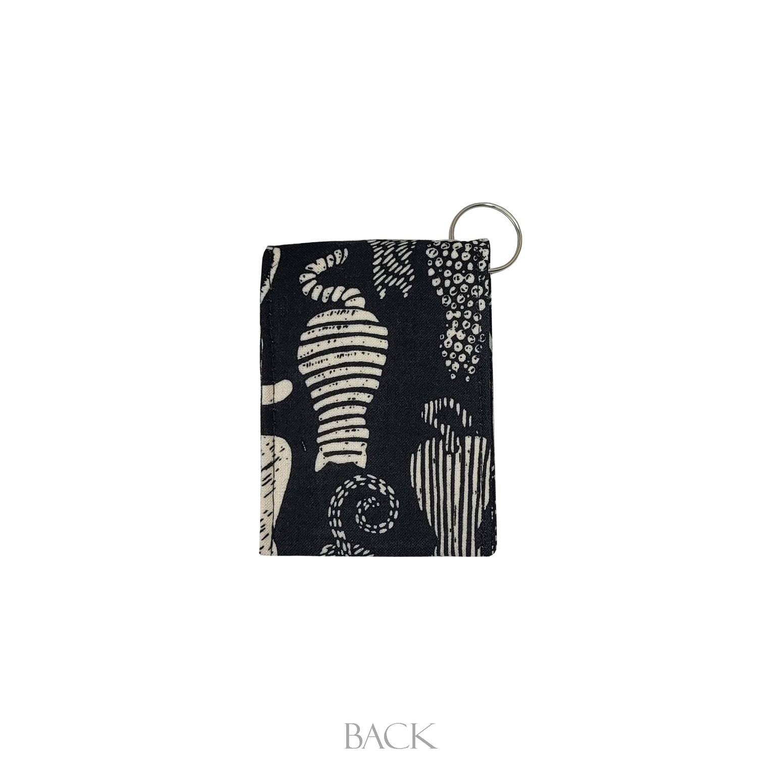 This keychain wallet is made from a cotton fabric. They fit up to 4 standard cards in each side (credit cards and business cards). Stashing some cash is also a breeze with these keychain wallets.
